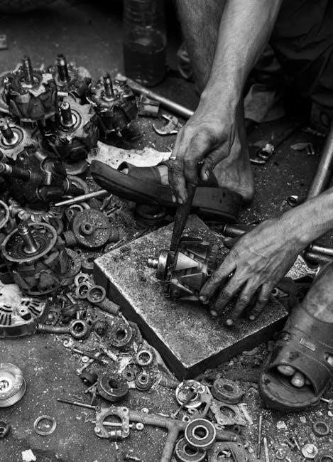 The manual lists part numbers for relays, connectors, switches, and wiring harnesses․ Always disconnect the battery before working on the electrical system to prevent shorts and potential hazards․ Proper electrical maintenance ensures safe and reliable operation․